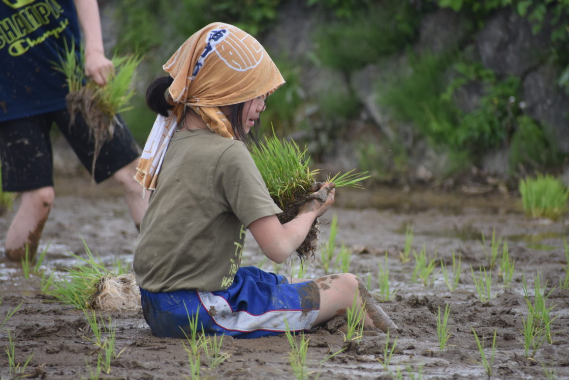 初めて素足で田んぼに入った子、泥を投げ合うことに一生懸命な子など、子どもたちにとっても良い経験で、楽しく田植えができました。