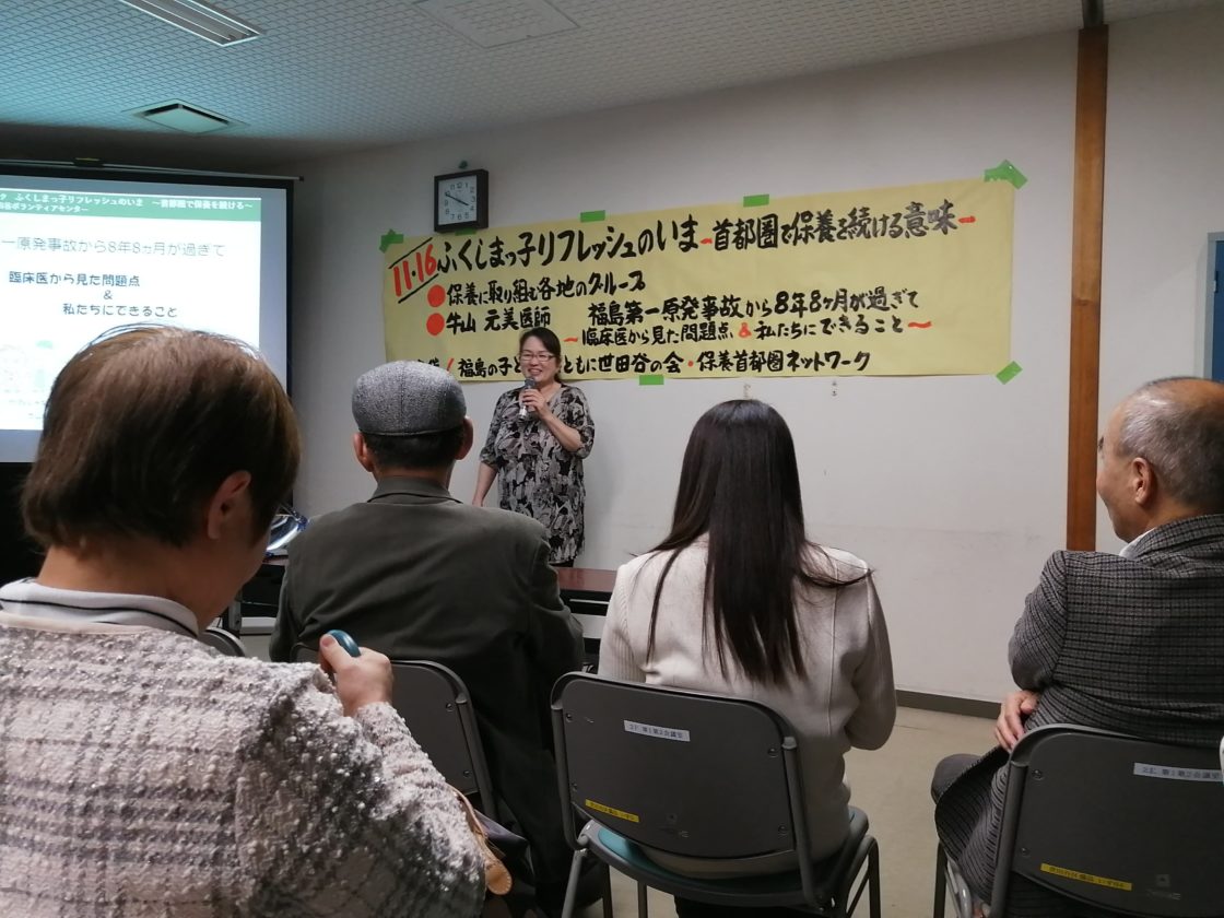 牛山元美医師による講演会では、改めてまだ気を付けねばならないこと、保養の必要性、福島の方々の現状・想い・悩みなどを知り 、それぞれの活動の継続への新たなモチベーションに繋がるものになったと思います。